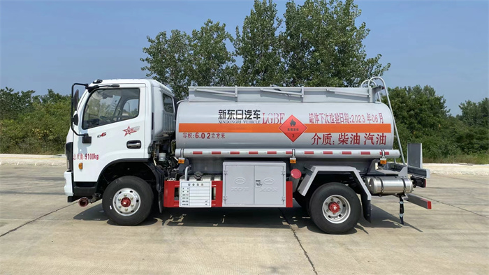 罐體配置:容積6.02立方米,罐體厚度大于等于4.2mm,采用Q235優質碳鋼板材制造,配齊魯油泵(可泵進泵出);通倉帶歐標全套下裝油系統(含1個歐標罐蓋,灌口內置呼吸閥,一個海底閥,1個下裝卸油閥、1個油氣回收閥、1個油氣回收接口、1個防溢流探桿和插座);罐體頂部兩側帶折疊升降防護欄,后置爬梯,操作箱內帶語音報警系統裝置,1套氣動組合開關,防靜電盤;標配顏色灰色,罐體兩側正中貼3M-1級橙色反光帶,貼三個“易燃液體”標識,安全告示牌,裝一工具箱。(可選裝大流量加油機,15米自動回位卷盤和加油槍)