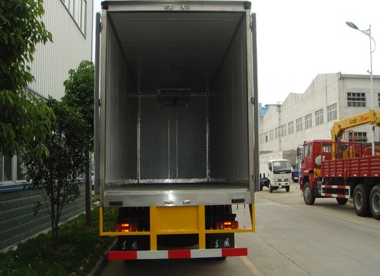 使用需求可加裝駕駛室空調和方向助力。 廂板為三明治式結構,內外蒙皮,中間輕鋼龍骨架及8厘米高密度聚胺脂保溫材料,采用國際先進的大型真 空負壓機一次性負壓成型,表面光潔平整,強度高,整體質量輕,保溫性能良好,無滲漏。 廂體內外蒙皮可根據用戶的實際需求選用玻璃鋼板 ,鋁合金板,彩鋼板,不銹鋼板等材質制作。用戶也可以根據運輸介質的不同選裝滑道,肉鉤,通風槽,側開門等。 | |||