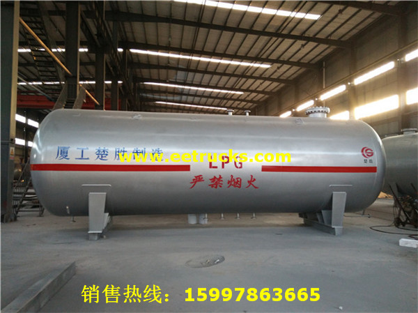 40立方液化氣儲罐設計壓力為1.77MPa,設計直徑為2400毫米,筒體厚度為14毫米,封頭為14毫米,設計使用壽命為20年,可以裝載16噸液化氣。
