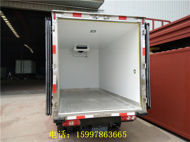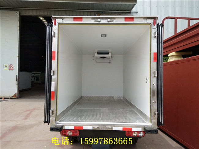 廂體參數:廂體壁板采用2.2mm內外玻璃鋼板材料制作,中間保溫層為80mm聚氨酯保溫板材料,箱體周圍采用鋁合金型材包邊,不銹鋼包角,門框及鎖飾件均為不銹鋼材質,安裝制冷機組最低溫度可以達到-18度(可調節)