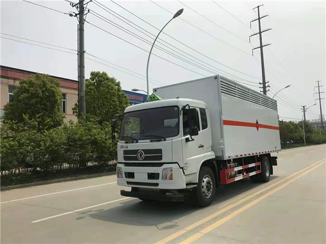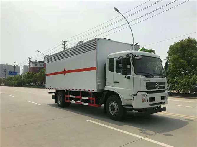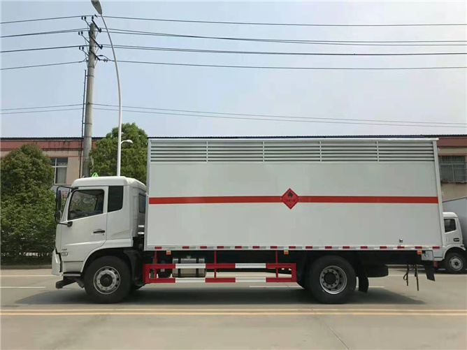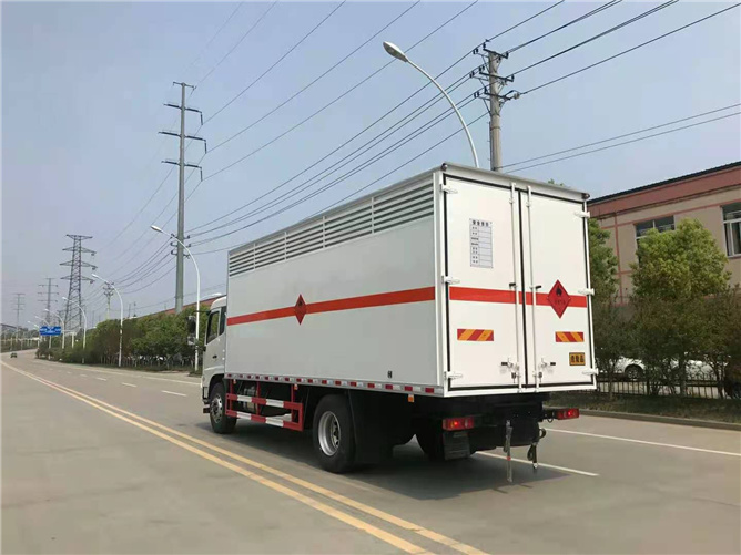 此輛易燃氣體廂式車搭載康明斯190馬力發動機,6噸前橋,10噸后橋,廂長6.6米,是款運輸能力較強的黃牌危險品廂式車。