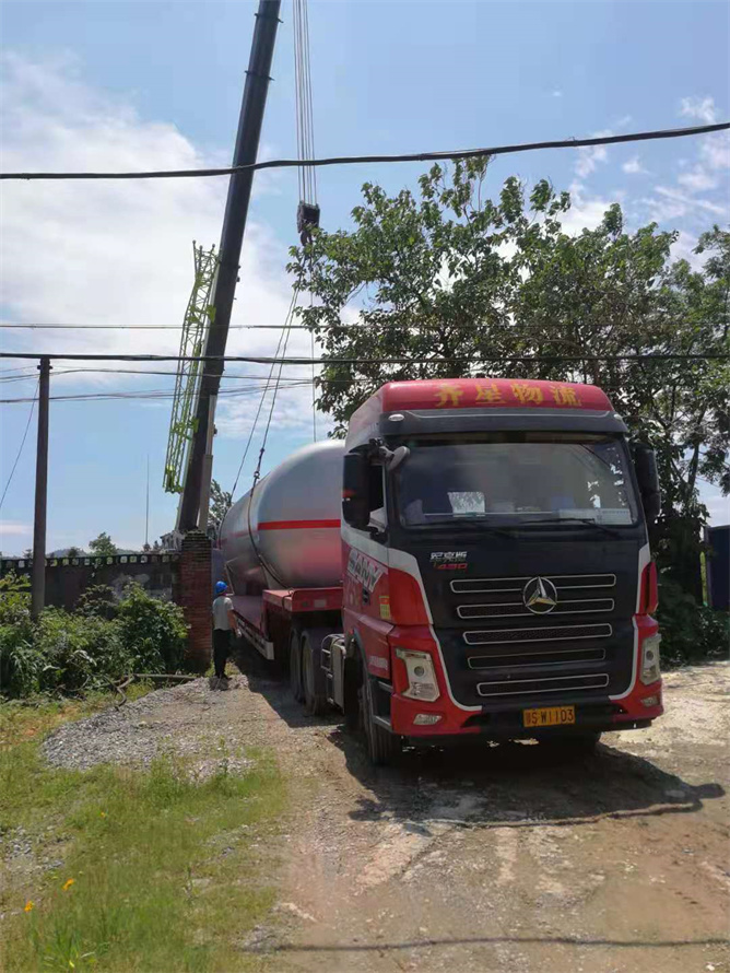 今天上午10點左右,我公司物流車隊陳師傅從江西撫州一客戶的氣站內發來儲罐起吊的圖片:100立方液化氣儲罐安全送至指定液化氣站內。