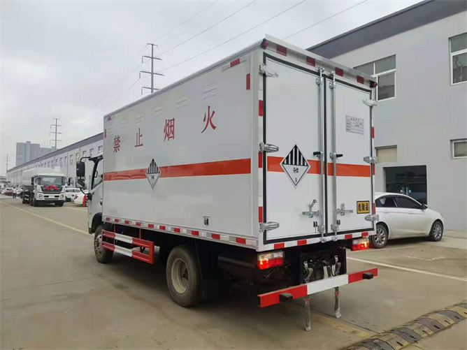 氣瓶運輸車外部有靜電帶、滅火器、防火罩,車廂內安裝煙霧報警器和門防盜報警器,嚴格按照國家危險品相關法規張貼。且此款東風福瑞卡F6氣瓶運輸車是藍牌車型。