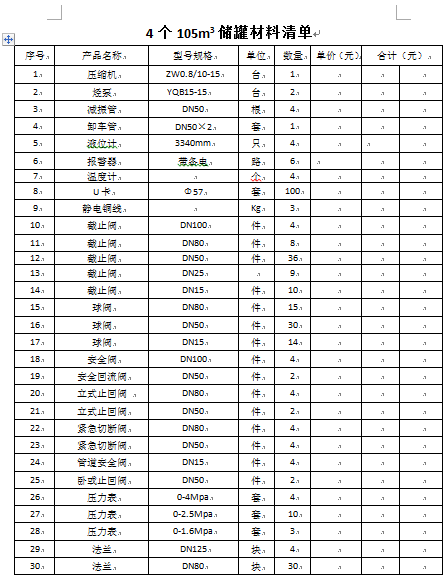 我公司專業生產液化氣儲罐設備,同時擁有液化氣站設計、安裝資質,常年為客戶提供交鑰匙工程項目,以下為4個100立方液化氣儲罐罐區設備的配置清單,可以供大家參考。