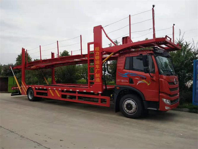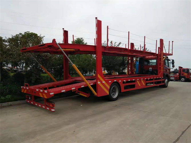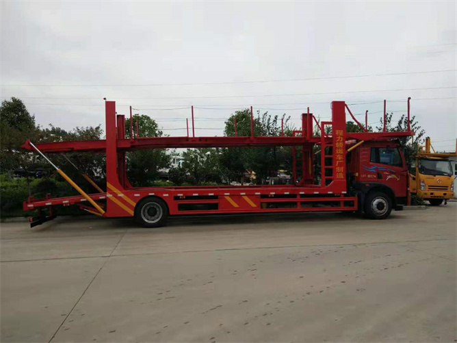 此款5位轎車運輸車是一款比較經典的車型,他的尾部可以采用液壓油缸或鏈條式兩種結構,各有千秋。