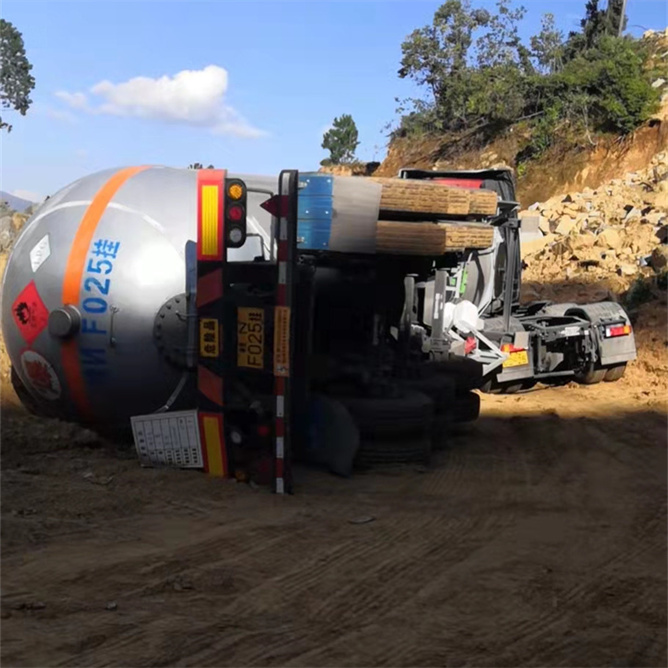 61.9立方液化氣半掛車是目前國內市場上使用狀況較好的一款液化氣運輸車,配置較為高端,采用HW590E材質制作,配置氣囊橋,側防護欄和工具箱、閥門箱均為鋁合金材質。由于液化氣半掛車常年在路上運輸液化氣介質,難免會發生事故,那么,若發生側翻或碰撞事故,該如何處理呢?