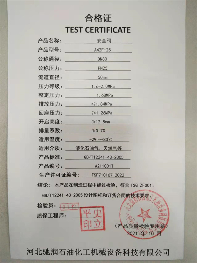 由上圖可以看出,安全閥合格證上對適用溫度和適用介質均有明確規定,因此用戶在液化氣安全閥時應注意關鍵參數是否正確,以免錯買導致無法使用。