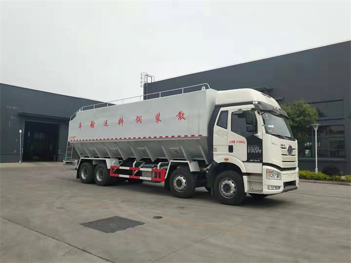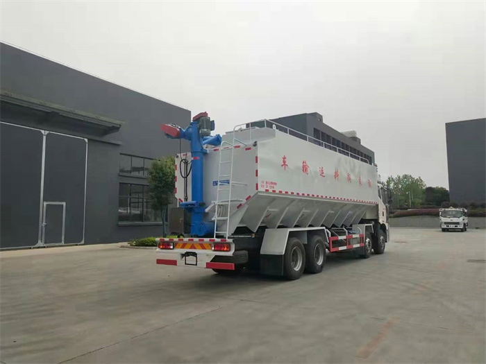 如今養殖業發展迅速,且向著規范管理、高產、高質、科學養殖方向發展,很多大型養殖企業均需要飼料運輸車進行快速作業。今天為大家介紹一款44立方前四后八飼料運輸車,它搭載錫柴360馬力發動機,詳細參數如下: