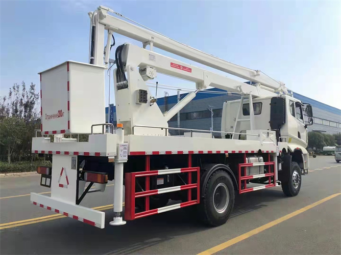 該款高空作業車采用三節折臂結構,最大作業半徑5.8米,最大作業高度12米,全方位360度回轉。最大起吊質量為1000kg,最大起吊高度為6.4米,吊藍額定載荷在200kg以內,吊藍尺寸:1080×620×1100mm。