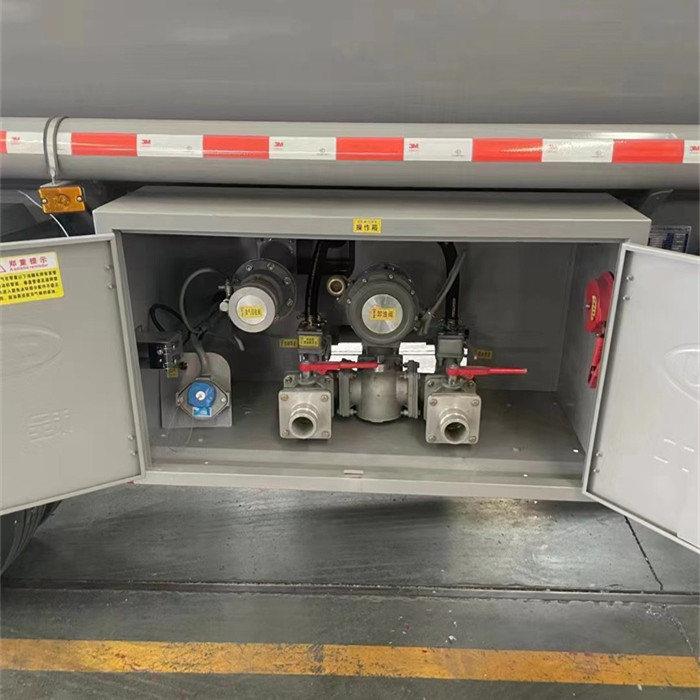 該車嚴格按照公告制造,容積8.3方,材質為Q235B,筒體4.5mm厚,封頭5mm厚,隔板3.5mm厚,單倉,罐頂壹個歐標罐口,1個海底閥,帶76/40專用油泵(可泵進泵出),大流量加油機及15米加粗卷盤及槍,全套歐標,后爬梯、手動護欄、工具箱、后保險杠、側防護欄。