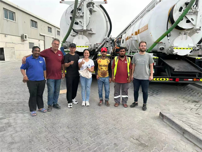 5月18日上午,幾位國外客戶如期來我公司吸污車分廠,對兩臺18立方重汽吸污車進行現場驗收,經過對底盤、罐體和各細節一番檢驗后,表示滿意,并與業務員一起合影留戀。