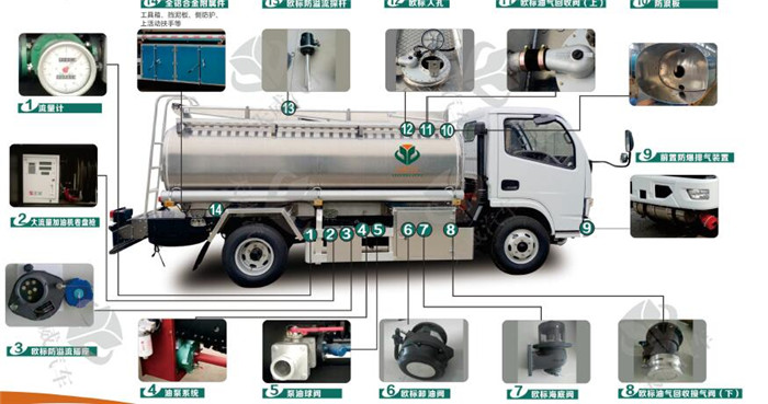 罐體采用5182鋁合金材質(zhì),結(jié)構為方圓形,筒體厚度6mm,封頭厚度7mm,配海底閥關閉語音報警系統(tǒng),1套下裝油(卸油閥、油氣回收、防溢流探桿、防靜電卷盤)。還裝有專用油泵,可實現(xiàn)泵進泵出。