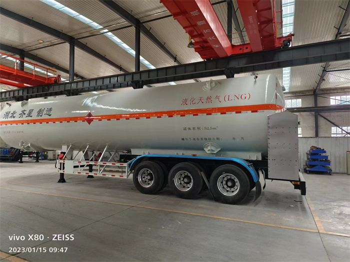 LNG又稱之謂液化天然氣,無論是工業(yè)上還是民用,使用均較為廣泛。它是一種低溫液化氣體,運輸車輛須按照移動式壓力容器標準設(shè)計生產(chǎn)制造,52.5立方LNG半掛車是國內(nèi)市場上常見的一款車型,它滿載可裝載24.5噸LNG介質(zhì),罐體焊接處百分百經(jīng)過探傷檢驗,裝有安全附件設(shè)備,運輸作業(yè)安全可靠。