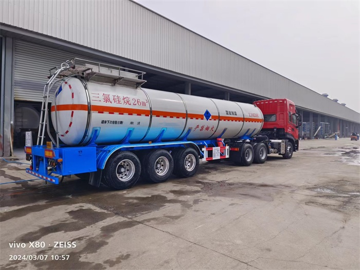 26立方不銹鋼三氯硅烷半掛車發(fā)車