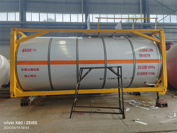 今天上午,一臺20英尺碳酸亞乙烯酯罐式集裝箱經(jīng)過作業(yè)人員的最后安裝調(diào)試工作,達到交付狀態(tài)。