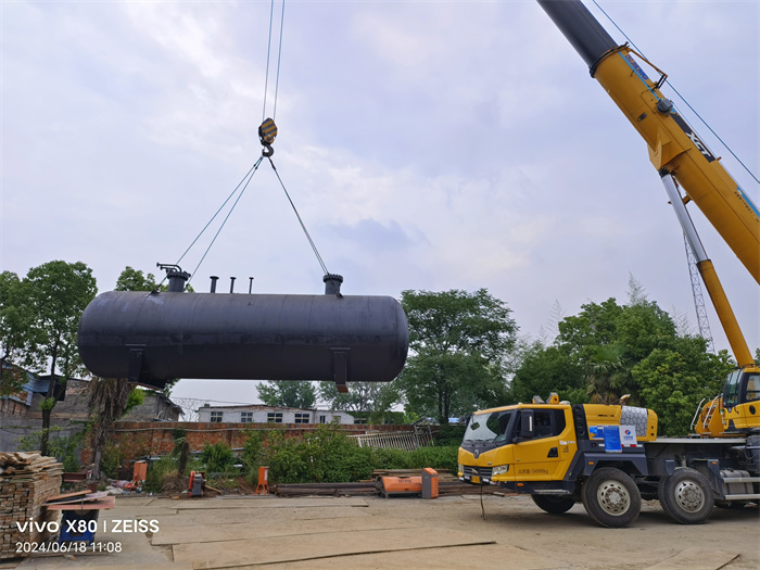 6月23日,我公司生產(chǎn)的4臺(tái)50立方液化氣地埋罐產(chǎn)品在襄陽(yáng)一液化氣站內(nèi)順利吊裝就位,只見(jiàn)現(xiàn)場(chǎng)一臺(tái)大型110噸吊機(jī)熟練的將各個(gè)儲(chǔ)罐從平板運(yùn)輸車(chē)上起吊并準(zhǔn)確的放置在地基下方的水泥墩上。