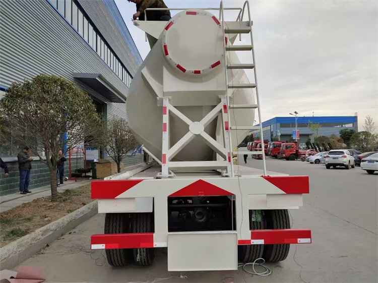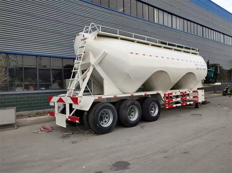 今天,我公司粉粒物料運輸車生產車間門口停放一輛嶄新的35立方粉煤灰半掛車,整個罐體噴成玉白色,罐體前端裝有空壓機,將出口至非洲為當地的物流公司服務。