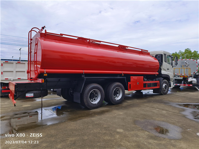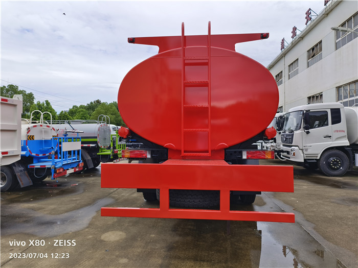 公告容積:21.8方,罐體實際有效容積22.5方,罐體采用高強度鋼材,全自動焊工藝,封頭6MM(水壓封頭),罐體5.5-5.7MM,2倉2個快開式人孔,國標(biāo),卸料閥3寸2件,單倉帶泵進泵出,2條PVC軟管,罐頂兩側(cè)活動護欄(折疊),帶海底閥及歐標(biāo)罐口,兩根與罐體同長出油管、兩個滅火器、一根爬梯、前封頭上端左右加裝一個導(dǎo)水管、帶靜電卷盤、后封頭上端左右各一個爆閃燈、帶安全告示。
