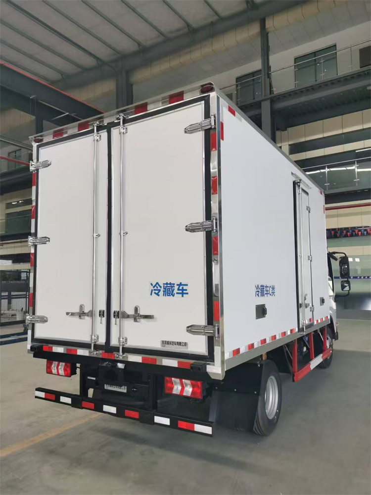 廂體工藝: 廂體材質采用內外玻璃鋼,中間8CM聚氨酯保溫板,后雙開門,廂體右側靠前選裝開側門,底部采用花紋防滑鋁板,前部排水孔,門邊條采用迷宮式橡膠密封條,鋁合金型材包邊,不銹鋼包角,不銹鋼門鎖,不銹鋼門框及合頁,廂體內節能LED照明燈。