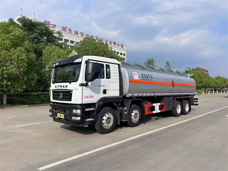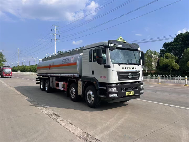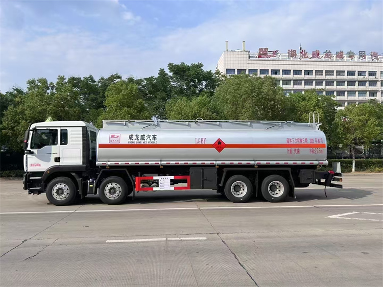 罐體配置:嚴格按照公告尺寸及外形圖片制作,公告容積27.5立方,罐體碳鋼板材,圓弧齒輪油泵(可泵進泵出),單倉(可定制多倉),全套下裝油系統(tǒng)(含1個下裝卸油閥、1個油氣回收閥、1個油氣回收接口、1套氣動組合開關(guān)、1個防溢流探桿和1個插座),兩個歐標罐蓋,一個海底閥,帶語音提示報警裝置,罐體兩側(cè)3M橙色反光帶、反光條,貼三個“易燃液體”標識,安全告示牌,危險品牌、危險品三角燈,兩根輸油管,兩個滅火器,其它按標準配置制作。