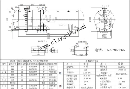 丙烯儲罐制造使用壓力容器鋼板Q345R,設計壓力2.16MPa,腐蝕裕量1毫米,水壓試驗壓力:2.7MPa。