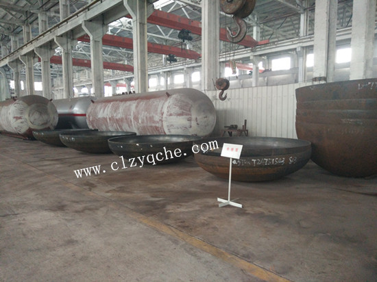 我公司生產的液化氣儲罐、液化氣槽車主要使用橢圓形封頭,尺寸主要有直徑2.2米、2.7米、3.1米等,液化氣槽車、液化氣半掛車主要使用球形封頭,生產成本相對較高,但是可以減輕車輛重量。