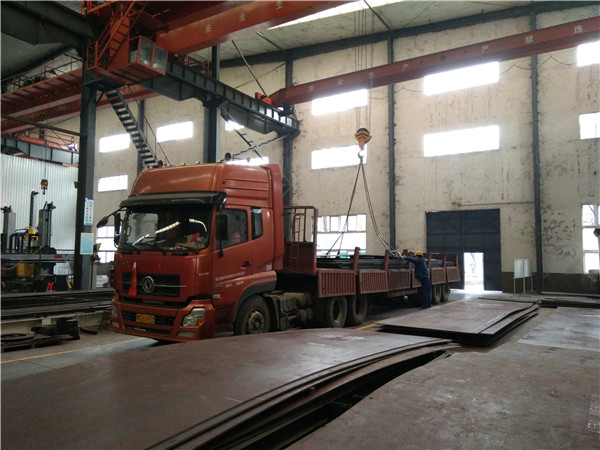 今天早上,一輛17.5米的運輸半掛車裝載著一批鋼板駛?cè)胛夜緣毫θ萜鲝S車間,據(jù)悉,此車鋼板為60立方氯硅烷儲罐的原材料,全部是武漢鋼廠生產(chǎn)。