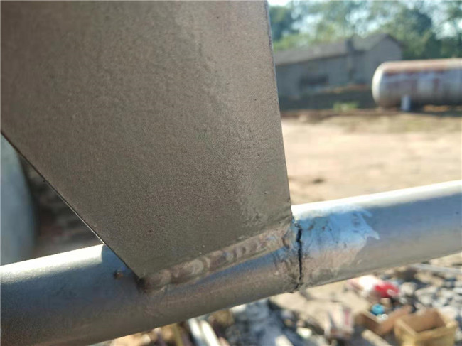 據(jù)悉,此次維修是應(yīng)用戶江總的要求,前半個月左右江總從我公司提走3臺100立方液化氣儲罐,后來卸貨吊裝時,因操作人員失誤,儲罐外面一根DN32的液位計接管與水泥基座相撞,液位計與角鋼焊接的地方斷裂了60%,出現(xiàn)了一個裂口,必須重新焊接。
