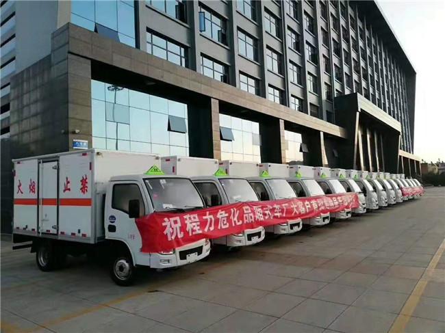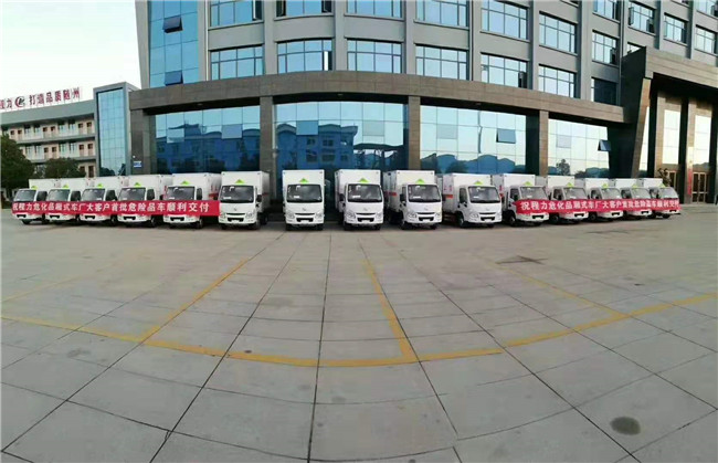 一大早,在我公司氣派的8號大樓下,可看見大量躍進氣瓶運輸車整整齊齊排成一排,上面用紅色橫幅貼著標語:“祝程力危化品廂式車大客戶首批危險品車順利交付”,氣勢如宏,體現出我公司發展向上的精氣神,同時為年底沖刺60億的目標加油!