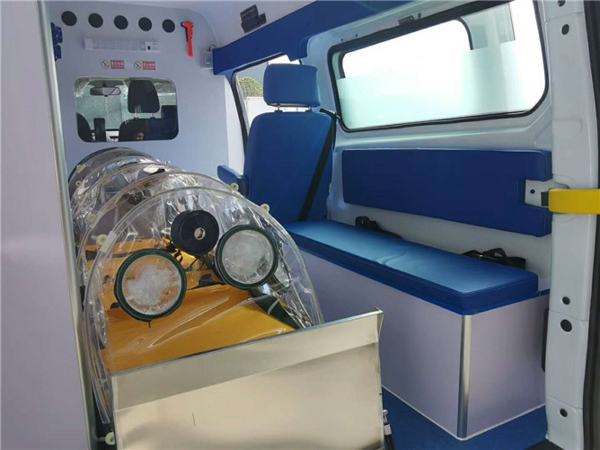此輛福特負壓救護車不僅安裝有當前最先進的車載電源系統和供氧系統,而且還有采用高分子材料制作的消毒和隔斷設備,且是按照中南醫院的專家要求定制的,主要針對重癥患者,提供專業的醫療設備。