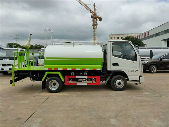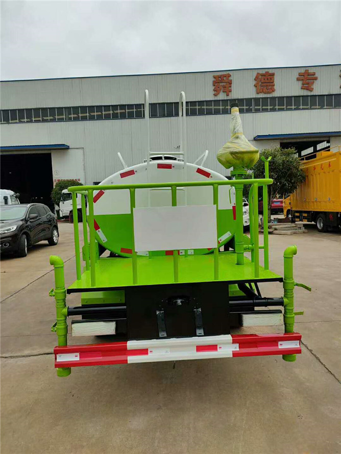 罐體配置:罐體采用優質碳鋼制作,有效容積3立方,配40或50灑水泵,可實現自吸加水、消防栓加水或罐體頂部加水。罐體內部設置有防浪板,減輕運輸途中液體對罐體的沖擊。管路采用大口徑無縫鋼管,流量大、射程遠。2個前對沖,2個后灑,2個側噴裝置,尾部設置一大平臺配28米綠化噴灑水炮,可全方位旋轉,且可調節成直沖狀、大雨、小雨、毛毛雨或霧狀。