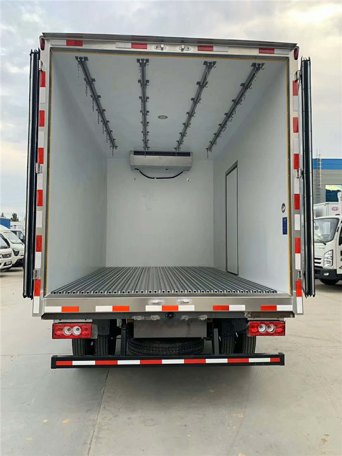 福田歐馬可S1冷藏車搭載康明斯130馬力發動機,窄體駕駛室,發動機排量為2.8L,國六排放標準,軸距3360mm,整車型號:BJ5048XLC-F3,廂長4.2米,帶空調,中控鎖,電動門窗,遙控鑰匙,剎車自調臂,還可選一排半駕駛室。是款藍牌冷藏車,且較為高端。