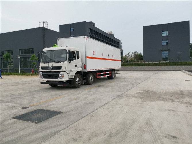 東風前四后四雜項危險物品廂式運輸車采用平頭帶臥汽車,搭載玉柴220馬力發動機,國五排放標準,帶方向助力,空調,8檔變速箱295真空綱絲胎,帶前盤式剎車,帶行車記錄儀,ABS,限速裝置。