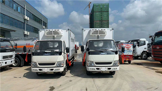 今天,烈日炎炎,兩臺江鈴醫療廢物轉運車整齊停放我公司廂式車生產車間側面,只見駕駛室車頭前均掛著紅彩頭, 甚是吉祥。