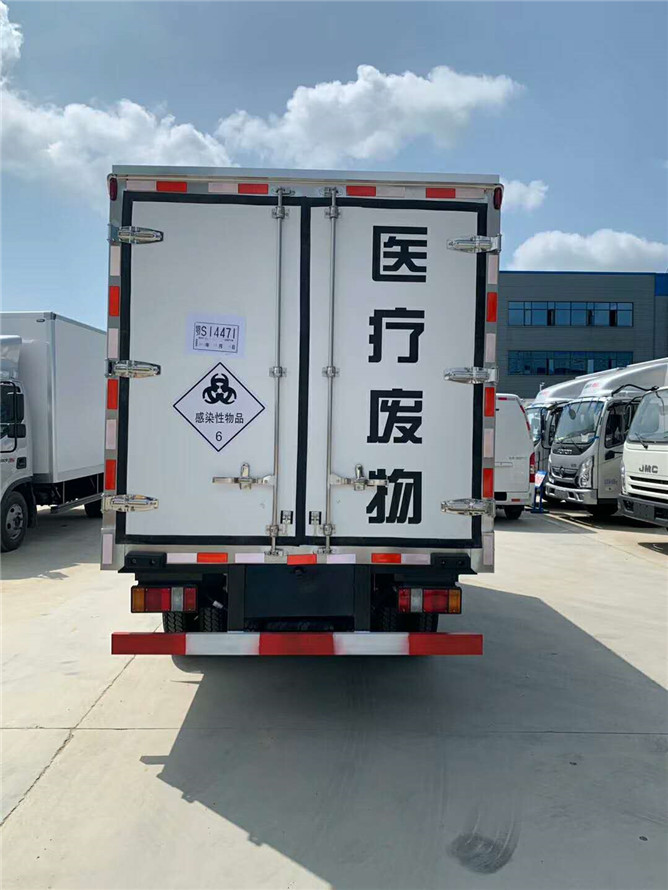 據悉,此兩臺江鈴醫療廢物轉運車搭載江鈴130馬力發動機,為國六排放標準,運輸介質為:感染性物質,診斷樣品,醫院診斷廢棄物,類項號:6.2。