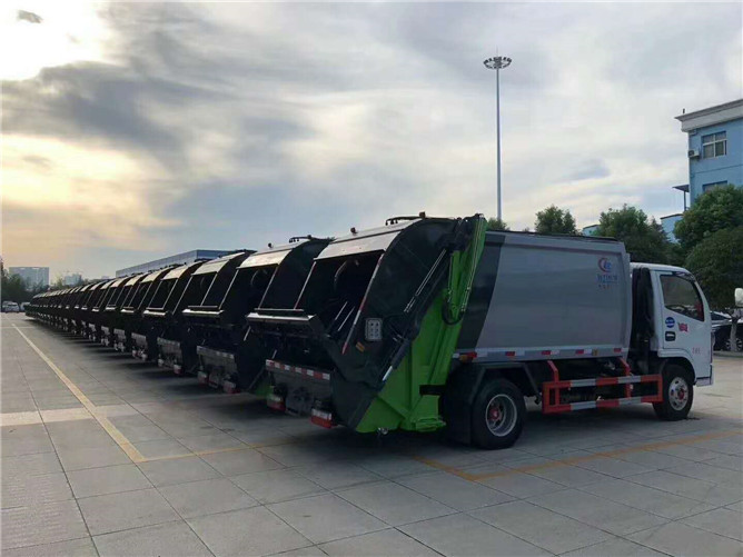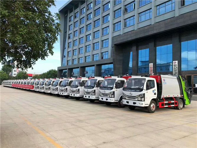 據悉,此批壓縮垃圾車均采用東風多利卡底盤,3800mm軸距,總質量11995kg,搭載萬里揚6檔變速箱,帶ABS,斷氣剎,多路閥、液壓油泵和液壓油缸均為國內一線品牌。廂體側邊和底部均用4mm厚低合金高強度鋼板制作,廂體容積為8立方。此款壓縮垃圾車性價比不錯,且我公司生產此種環衛車多年,生產質量可靠,售后服務及時到位,深受客戶喜愛。