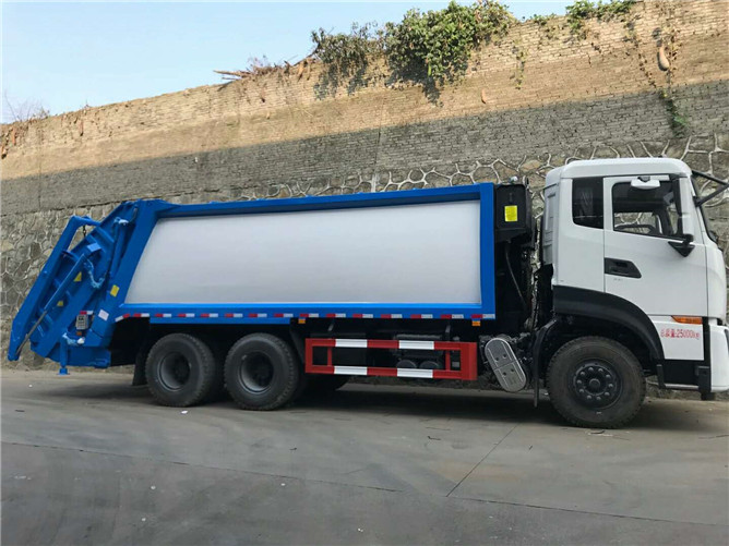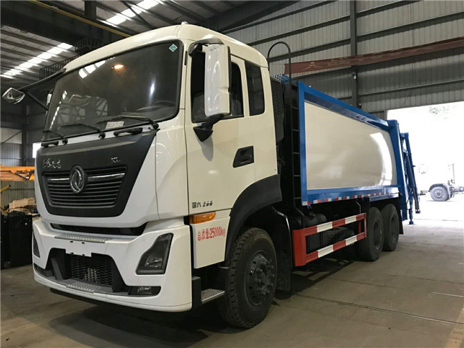19立方東風(fēng)天龍壓縮式垃圾車搭載康機270馬力發(fā)動機,后翻轉(zhuǎn)帶擺臂,是壓縮式垃圾車中容量較大的車型。