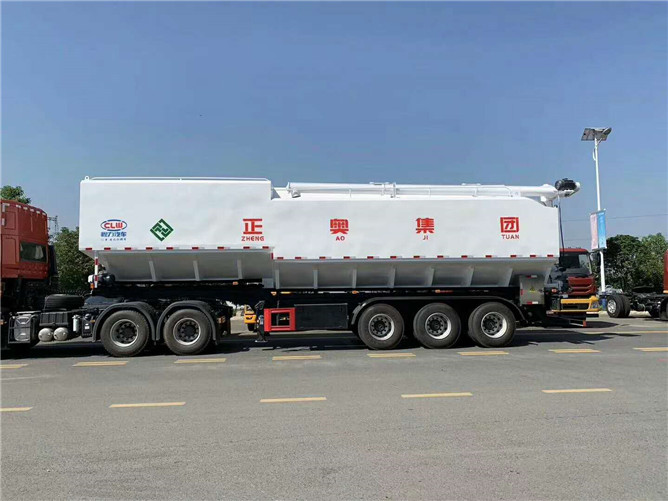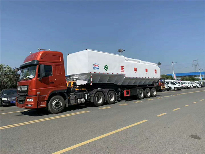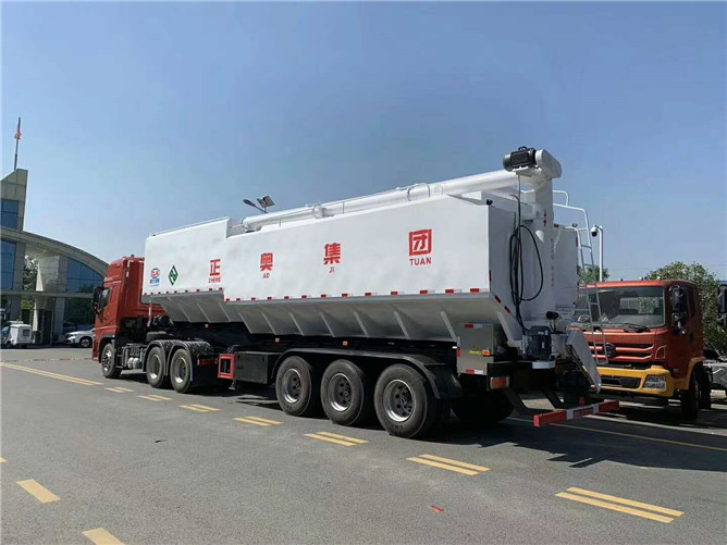 此款散裝飼料半掛車額定質量為29.3噸,為目前國內最大的一款飼料運輸車。