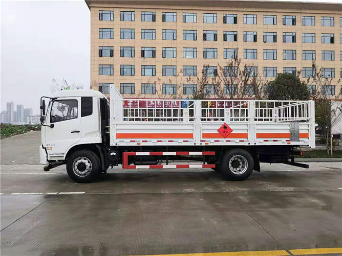 氣瓶運輸車專業運輸二類易燃氣體危險品,按車型可分為藍牌和黃牌,廂體結構不同,有倉欄式和廂式氣瓶運輸車。無論是哪種,只有安全達標的車才能在市場上銷售。今天為大家介紹一款新的暢銷氣瓶運輸車:東風天錦氣瓶運輸車。