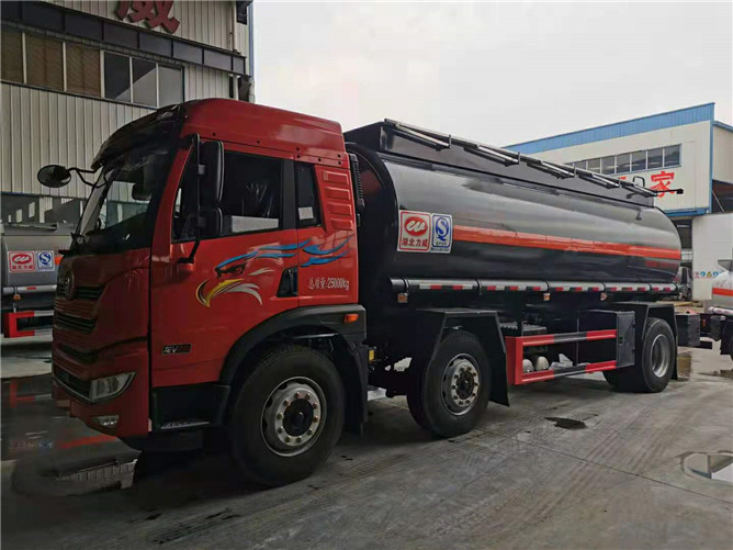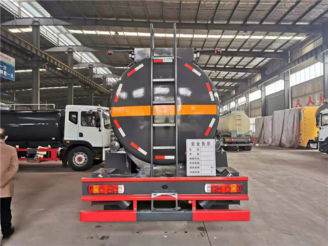 此款硝酸運輸車搭載解放220馬力柴油發動機,罐體采用304不銹鋼制作,筒體和封頭厚度均為5毫米,滿載可以運輸15噸10%濃度的硝酸介質。