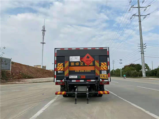 此款氣瓶運輸車軸距為3360mm,貨廂長4.1米,核載 745kg或1.15噸,發動機可選康機2.8L排量康機131馬力或全柴130馬力,且可選裝液壓升降尾板。表現性能極佳。