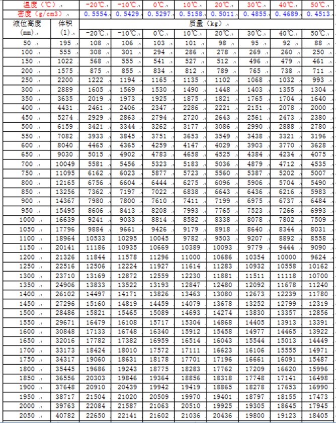 50立方液化氣儲(chǔ)罐容積表