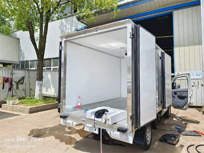 今天,兩臺福田祥菱V1冷藏車在裝完制冷機(jī)組后,準(zhǔn)備進(jìn)行最后的調(diào)試工作,即將下線。