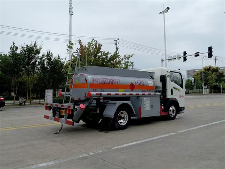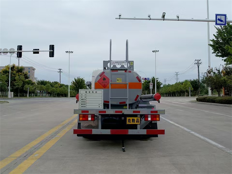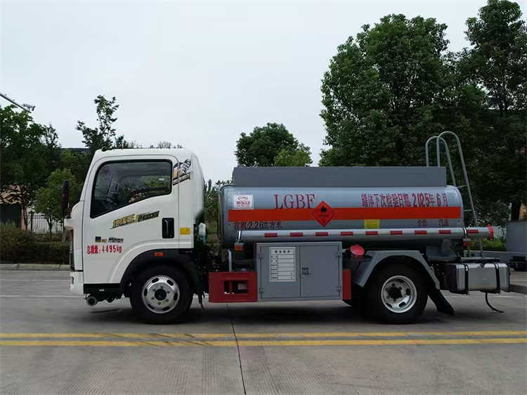 罐體配置:公告容積2.26立方,采用Q235優質碳鋼板材,標配大流量油泵(可泵進泵出),標配通倉帶歐標全套下裝油系統(含1個下裝卸油閥、1個油氣回收閥、1個油氣回收接口、1套氣動組合開關、1個防溢流探桿和1個插座),一只歐標罐蓋,一個海底閥,罐體頂部兩側帶折疊升降防護欄,標配顏色灰色,罐體兩側正中貼橙色反光帶,貼三個“易燃液體”標識,安全告示牌,合適位置安裝一只工具箱,其它均為廠家標配。